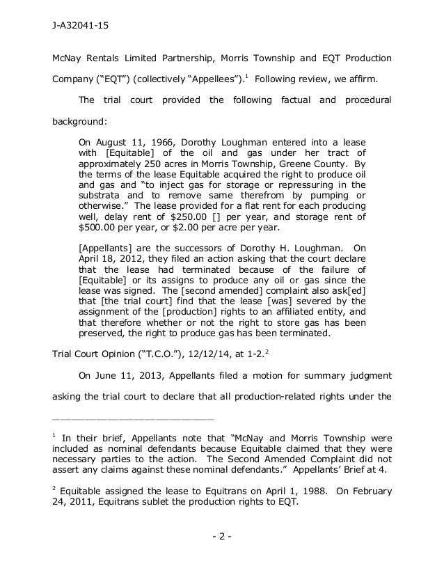 The group also argued that EQT’s lease deals were invalid because the company had failed to make required payments to the landowners to store natural gas on their properties. ... Document Viewer